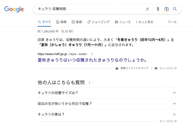 キーワードが「きゅうり 収穫時期」ならそのままの順番で使用します。